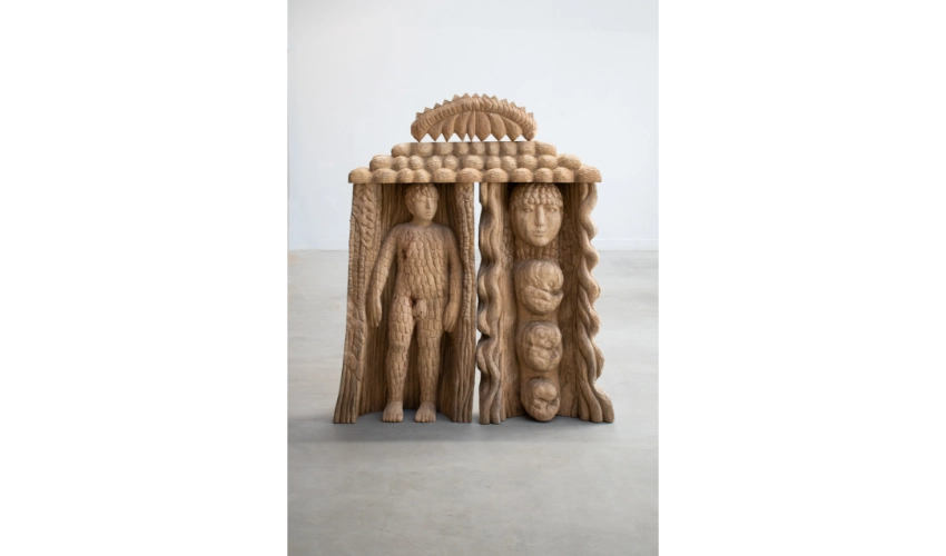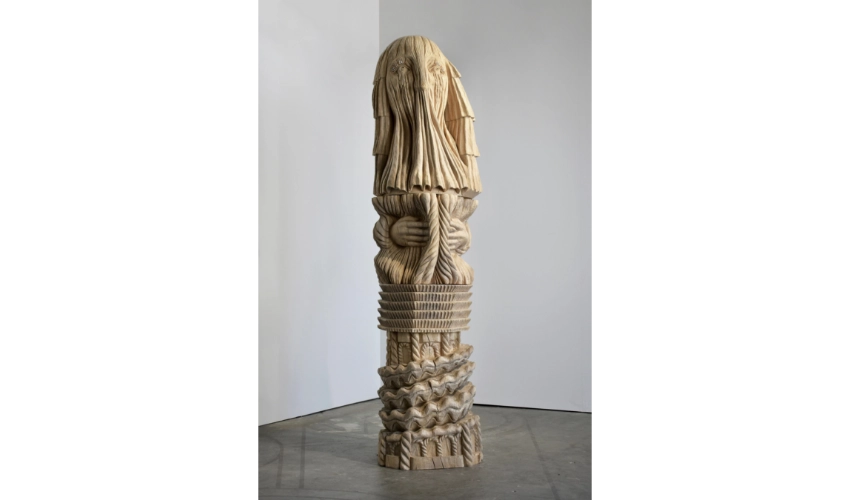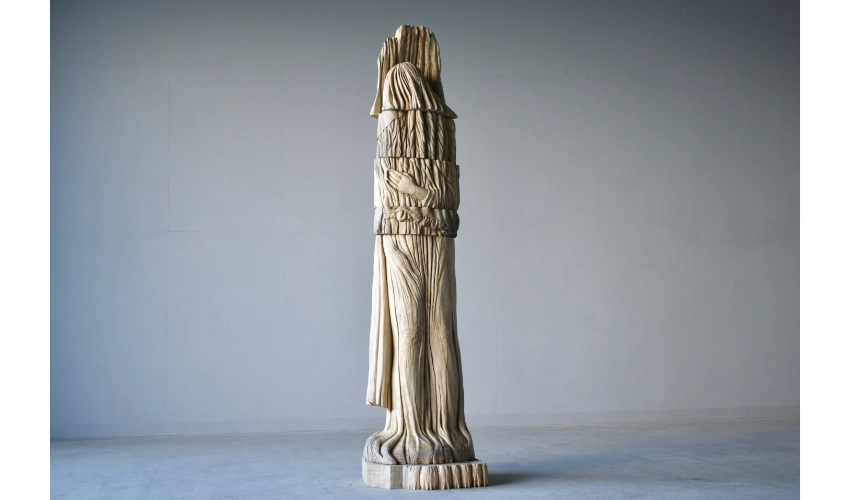 「木を彫り、分断し、積み重ねる」という行為の連続性から生まれる物語をテーマとして、人や架空の生き物を制作。木を彫ることを弔いと再生の行為のように考え、アニミズムをはらんだモニュメンタルな造形は、原始の世界から現代まで続く人の姿を表している。北海道の木彫り文化や民芸品の研究を通して、木彫の新たな表現を探している。