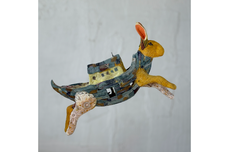 公開制作で生まれた動物達は、楽しげに浮遊しているようであると同時にどこか悲しげに吊り下げられているようにも見える。