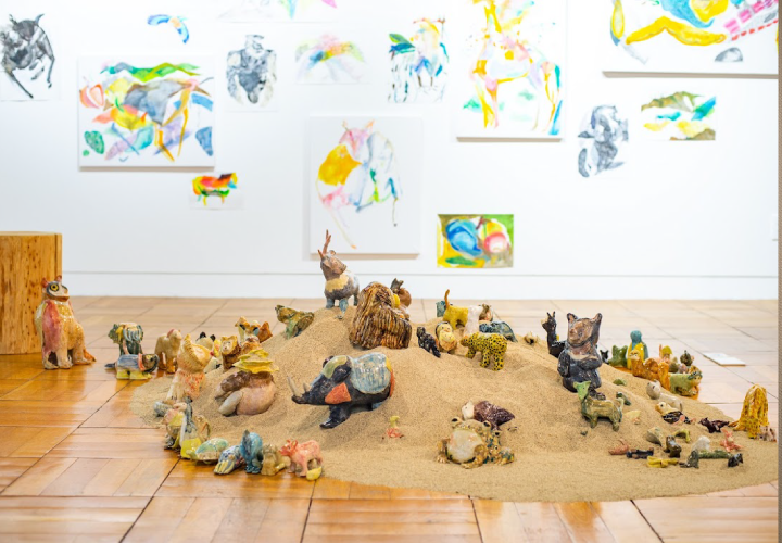 解体して素材となる作品は、木の板を彫刻刀で彫って画面をつくる木彩画や、麻や綿のキャンバスに描いた油絵、陶芸作品、版画やドローイングの紙作品など、多岐に渡る。