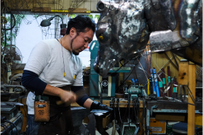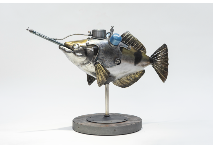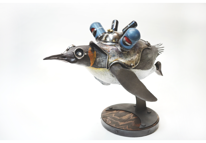 内田望は、鉄をはじめとする金属を素材に、鍛金技法を用いて動植物をモチーフとした彫刻作品を制作している。日本、香港、台湾などアジア圏のアートフェアを中心に作品を発表している。内田の作品は、人間とは異なる身体的機能を持ち、異なる環境で生きながらも同じ世界に共存する生物たちの姿に着目する。メガホンやボイラーといった、人間が能力を補うために生み出した科学技術的装置と、生まれながらに特殊な能力を備えた生物の姿を融合させることで、生物が本来持つ機能や特性を強調している。